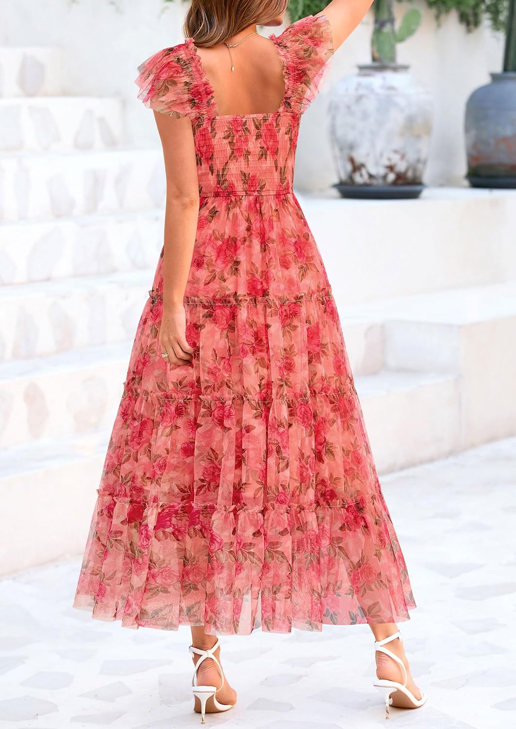 - CHIC FEATURES: This Summer Sundress Features A Delicate Tulle Fabric with Lining, Adding A Touch of Elegance and Femininity to Your Outfit. Women Long Flowy Dress Features A Smocked Design, Bringing Both Style and Comfort, Creating An Hourglass Shape and Highlighting Your Natural Curves. Casual Midi Dress with Delightful Frill Layers That Adds A Playful Touch to Your Look, Creating A Flouncy and Charming Appearance