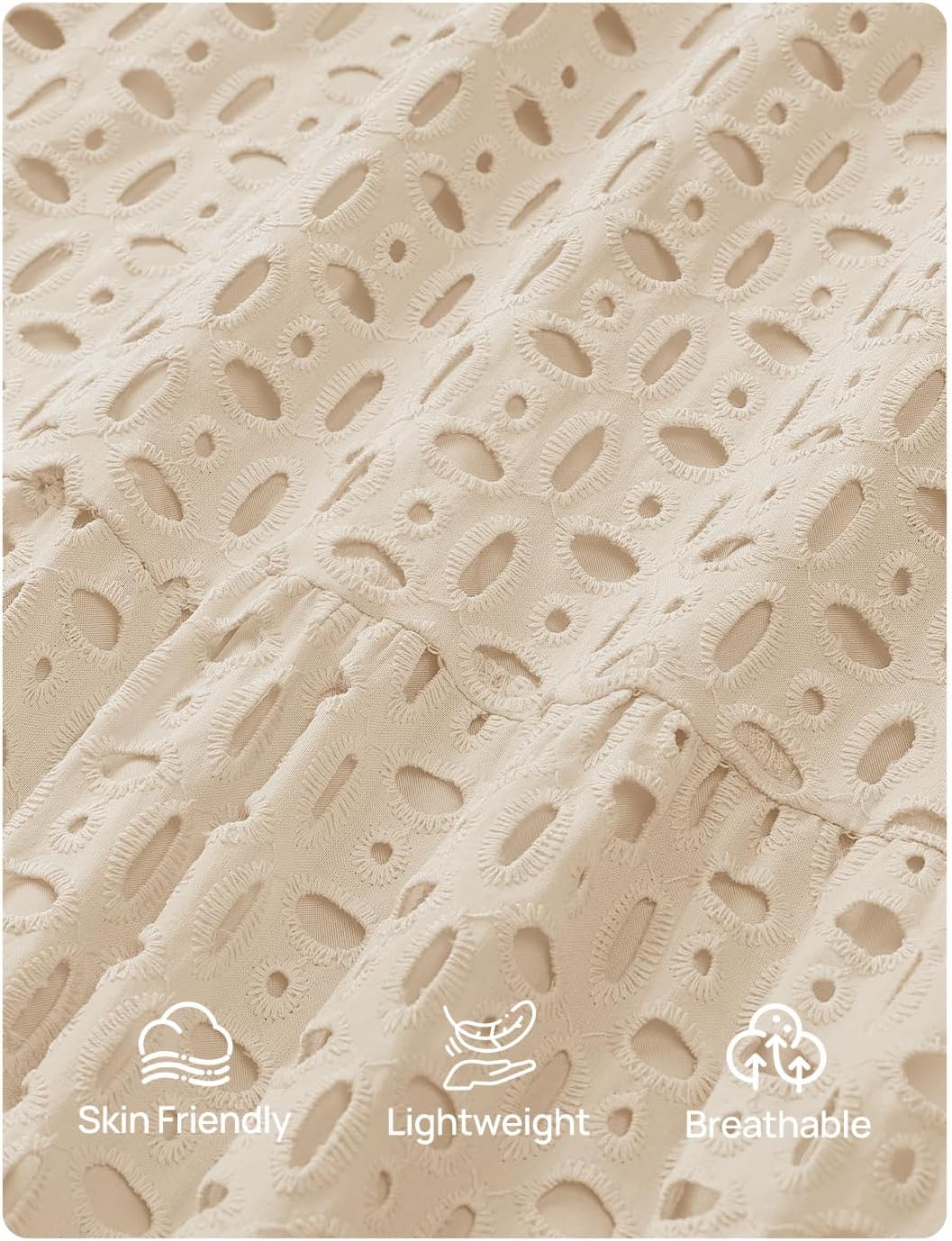 - Design: This long dress has a chic lace eyelet embroidered hollow-out design, it’s not see through and makes you stand out in a crowd. The elastic waist and A-line hem design can accentuate your charming waist curve, creating a fashion and charming look